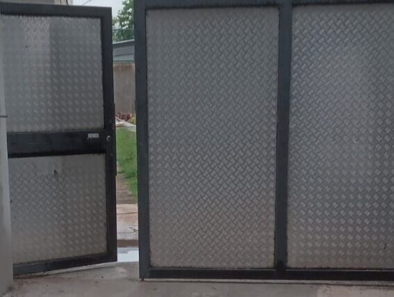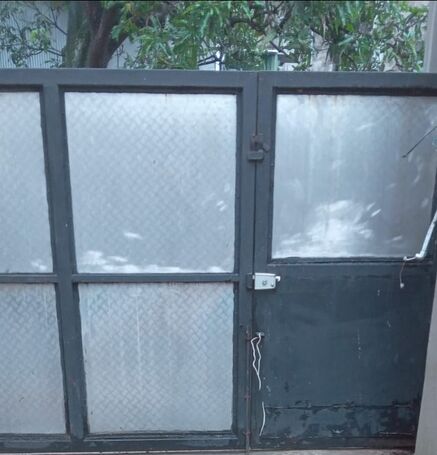 Gate with unique design. Square Frame made with black box bar with thick bus type Aluminium sheets covering the inside area of square frame. Very strong gate that cannot be broken by thieves.
